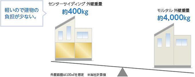 約4kg/㎡と軽量設計のセンターサイディングは、サイディング本体の片側を固定し他方をかん合する形式を採用。