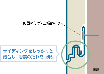 地震の揺れによる外壁の変形をかん合部のスライドで吸収し、地震の力を逃がします。