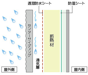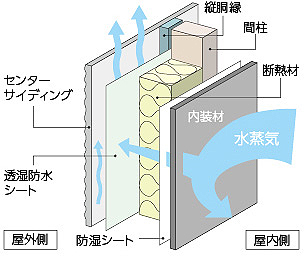 壁体内の結露を防止。湿気を外気に放出できるので、内部結露を抑制することができます。