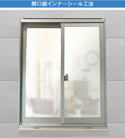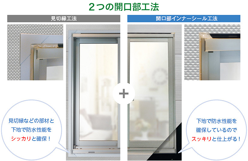 - 専用付属部材および捨てシール施工により防水施工を行う工法で、外壁材と開口部サッシ取り合い部の化粧シールは保証対象外になります。