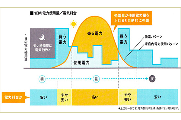 時間帯別電灯契約を利用すれば更にお得! 昼間の電気は高く売り、夜間は割安な電気を購入する事ができますので予想以上の経済効果を発揮します。