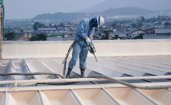 瓦棒屋根、折板屋根は夏場は表面温度が80℃位に達することもあります。ジェットスプレーの厚膜を吹付けることで、防水性・耐久性が向上格段にします。さらに遮熱塗料を塗布することで表面温度を大きく下げ、光熱費の削減にもつながります。 - 建築後30年程の屋根も性能が向上し新しくよみがえります。耐久性にも優れています。