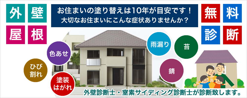 株式会社RokusyouTosouでは、外壁診断士・窒素サイディング診断士による皆様のお住まいの外壁・屋根の状態を詳細に無料でチェックをさせていただきます。