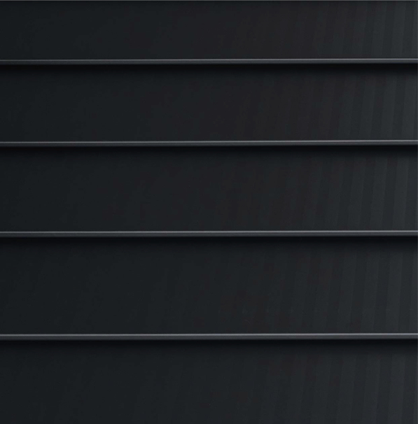 立体感あるすっきりとした横葺きにV型ウェーブの凹凸で屋根面に表情を持たせた意匠になっております。また、本体厚みが最大20mmの段葺き形状の屋根ですので、重量感のある葺き上がりになります。
