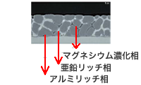 マグネシウムの効果で、亜鉛リッチ相がより綿密な保護皮膜を形成することにより、亜鉛めっき鋼板に比べてもとくに厳しい腐食環境で強い耐食性を発揮します。