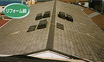 既存の着色石綿スレート屋根等の上からそのまま施工ができるため、廃材を出さずにリフォームが出来ます。