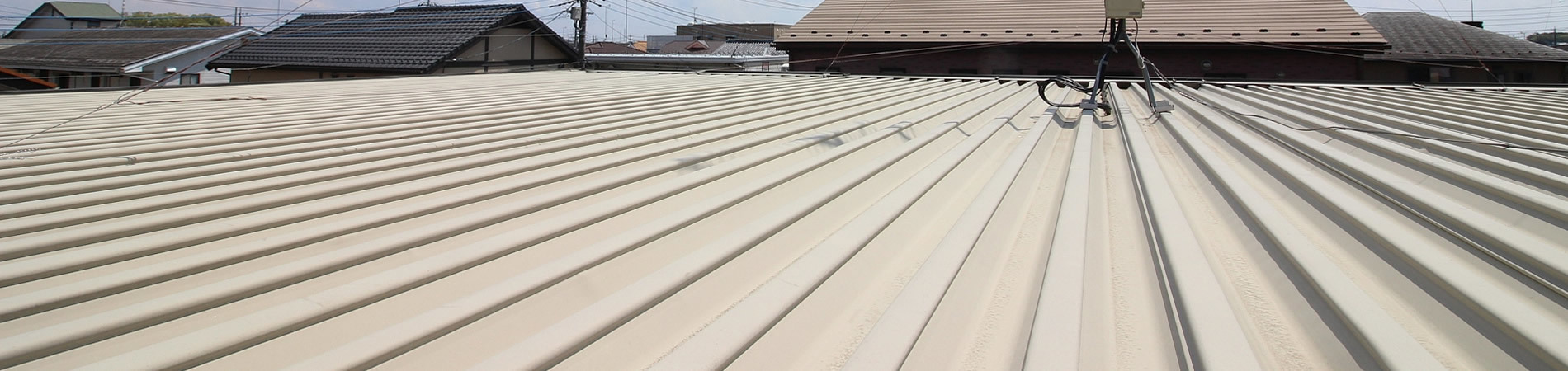 瓦棒屋根、折板屋根は夏場は表面温度が80℃位に達することもあります。ジェットスプレーの厚膜を吹付けることで、防水性・耐久性が向上格段にします。さらに遮熱塗料を塗布することで表面温度を大きく下げ、光熱費の削減にもつながります。 - 建築後30年程の屋根も性能が向上し新しくよみがえります。耐久性にも優れています。