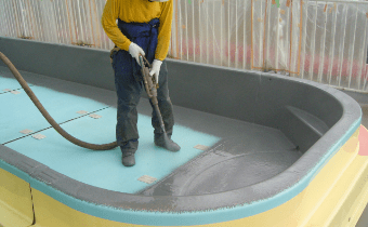 - ジェットスプレー工法はスポーツ施設でも多方面に渡って使用されており、野球場・競技場・プール・プールサイド・野球場ソフトVフェンス・スケート場などでも使用されています。
