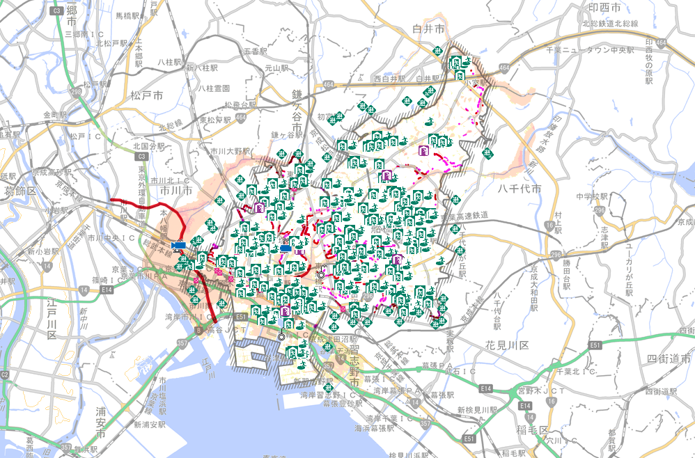 また、海や公園など自然も豊かで、ふなばし三番瀬海浜公園では潮干狩りやバードウォッチングを楽しむことができます。温暖で穏やかな気候のもと、子育て・教育環境も整っており、家族で安心して暮らせるまちとして人気です。