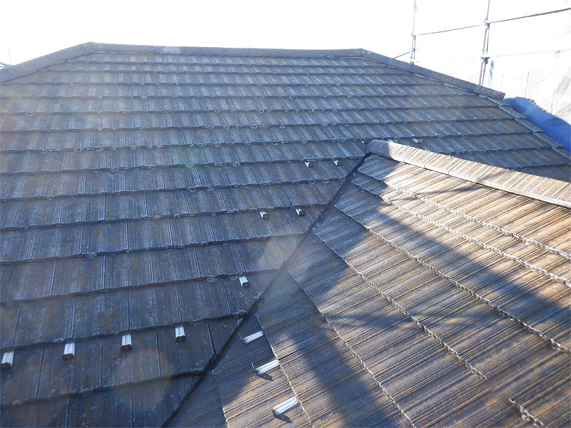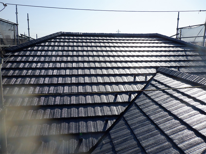 屋根:モニエル瓦 水谷ペイント 水系ナノシリコン 色 ナチュラルグレー
