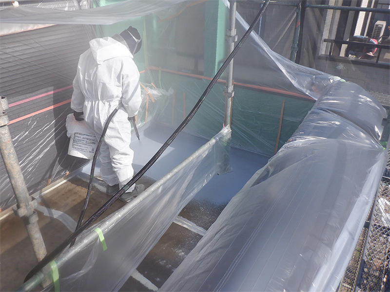 ベランダ床:超速乾透湿性 ジェットスプレー工法