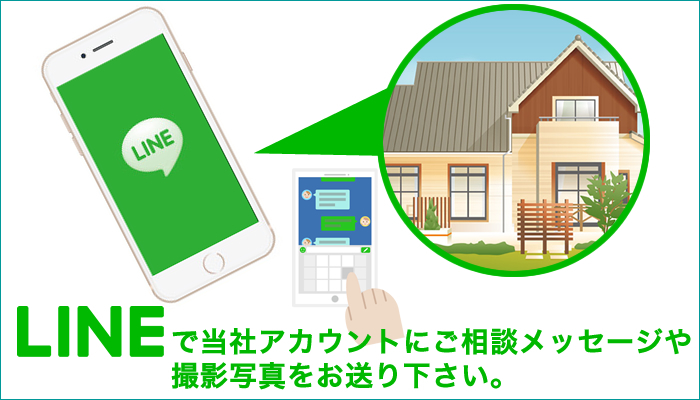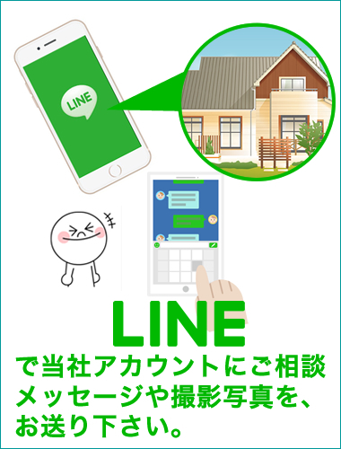 ご自宅の全体のお写真や気になる部分などのお写真を多めに撮影していただき、メッセージを添えて当社LINEアカウントまで送って下さい。
