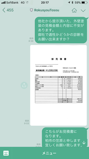 ・LINEで見積り内容・金額が適正なのか判断して欲しい。