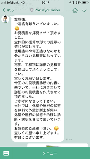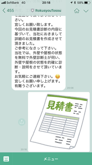 また、他社様の見積内容が適正かどうかの見積診断を行っています。見積書を写真撮影していただいて当社LINEアカウントに送って下さい。適正診断をさせていただきます。