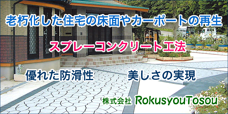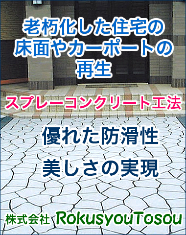スプレーコンクリートは既存のコンクリート床へ吹き付ける薄層モルタル工法です、デザイン型紙を使用して、美しいリフォームを実現致します。優れた防滑性を発揮します。スプレーコンクリートは、通常のコンクリートより高い圧縮強度を誇っています。老朽化したコンクリートが見違える程の美しさに生まれ変わります。