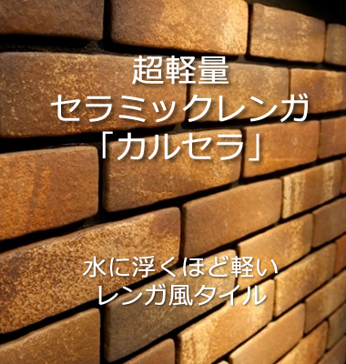 建物本体に負担をかけない比重約0.85の超軽量素材です。構造体にも負担をかけないため、家が長持ちします。水に浮くほど軽いカルセラは、重たいタイルを張ることが出来なかっら外断熱工法等にも使用することができます。タイルの持つ高級感は表現しながら、タイルの重たいという常識を覆し、超軽量を実現した優れたセラミックタイルになります。
