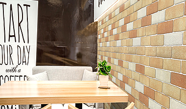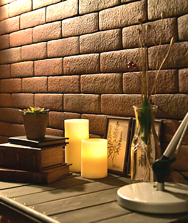 発泡セラミックの特長による、寸法や形状にムラや、また特殊加飾による色柄のムラが手作り感の丸みを帯びた雰囲気を演出いたします。またこのムラが、下地のたわみを吸収し、自然で高級感のある風合いに仕上がります。