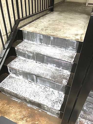 緑青塗装では、タキステップによる階段の修繕ならびにタキロンシートによる廊下や通路の修繕工事を承っております。