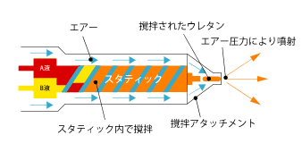 スタティックを使った確実なかくはんと厚み付けを自在に行えることがジェットスプレーの特徴です。
