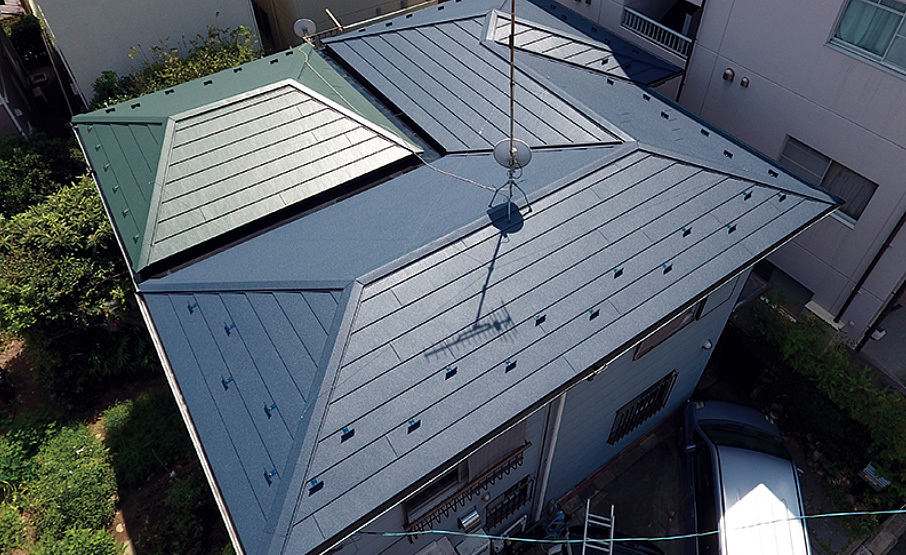 このような背景の中で、既存のコロニアルの上に軽量屋根材を張るカバー工法が開発されました。