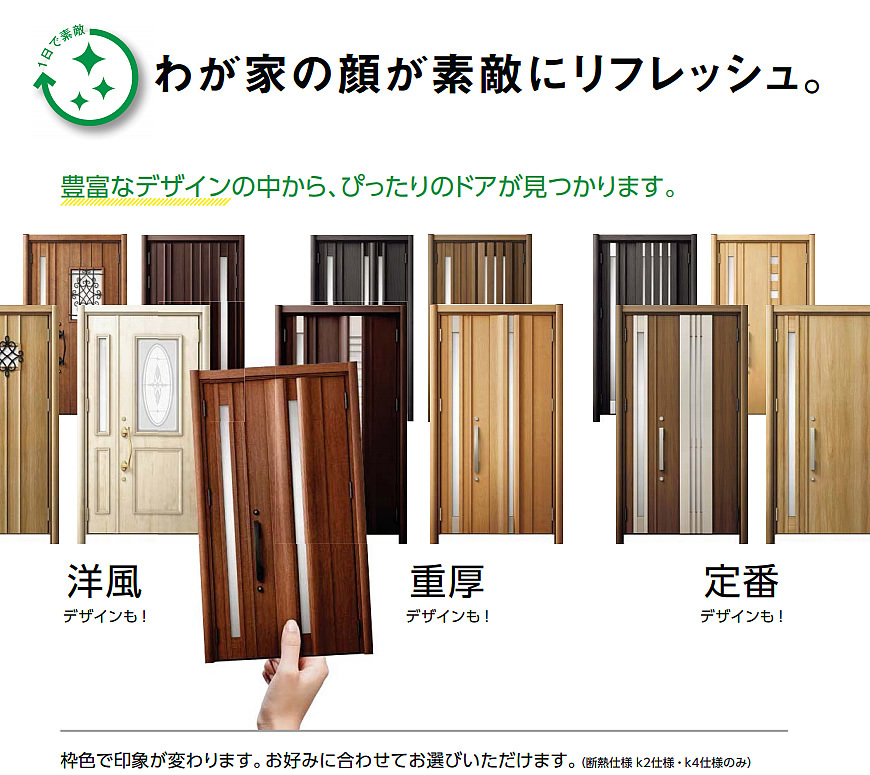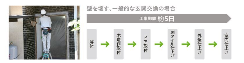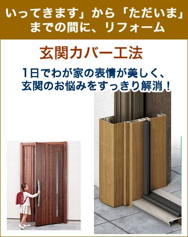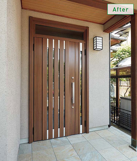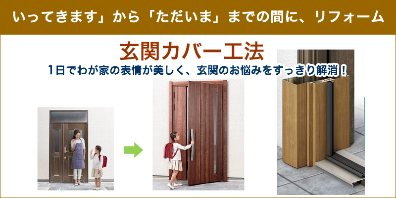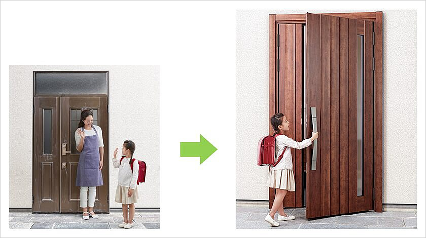 「リシェント」は既存の枠の上に新しいドアを枠ごと取り付ける「カバー工法」。そのためにたった1日で完成し、かつ壁や床などを傷める心配もありません。