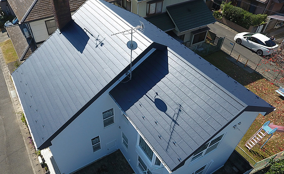 このような背景の中で、既存のコロニアルの上に軽量屋根材を張るカバー工法が開発されました。