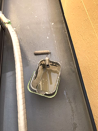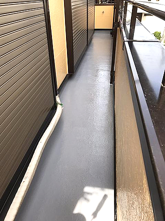 ベランダやバルコニーの床の表面には、主にグレー色の塗料が塗られているのを見かけることが多いと思います。このグレーの塗装が「トップコート」になります。カラーバリエーションは豊富で、ベージュ・白・黒・ライトブルー・グリーンなども選ぶことが出来ます。