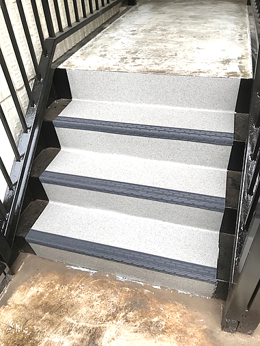 緑青塗装では、タキステップによる階段の修繕ならびにタキロンシートによる廊下や通路の修繕工事を承っております。