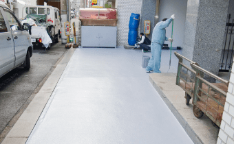 - 長期間休めない店舗の改修でも、ジェットスプレー工法は機械化、省力化で短時間で防水膜を形成します。