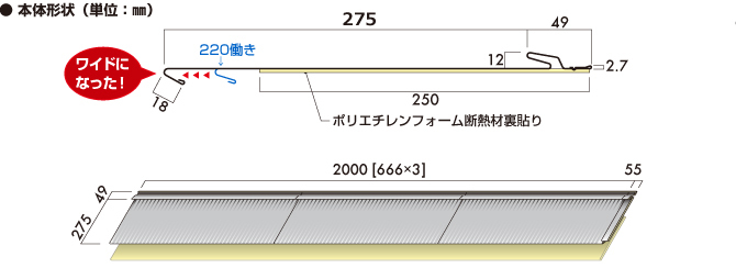 下ハゼ部形状は締結が安定していますので、優れた施工性を発揮してくれます。