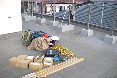 屋上部フェンスや架台取り外し