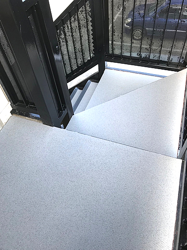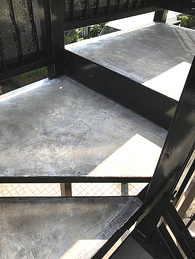 緑青塗装では、タキステップによる階段の修繕ならびにタキロンシートによる廊下や通路の修繕工事を承っております。